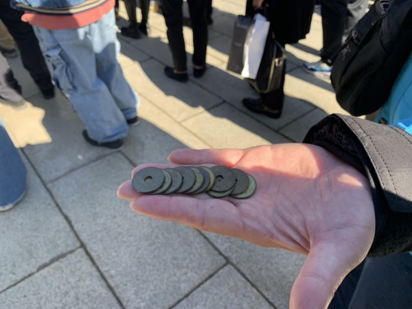 今回のお賽銭は、5円玉を11枚で55円としました。なんとなく縁起が良さそうなので・・・