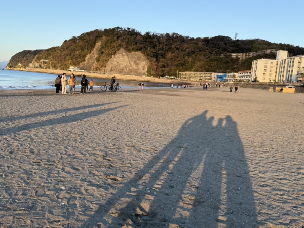元旦は、初日の出を見るために、朝早く起きて家族で自転車で逗子海岸へ。水平線から日の出が見れれば理想的なのですが、逗子海岸はどうしてもそうはいかず山から太陽が上がってきます。
